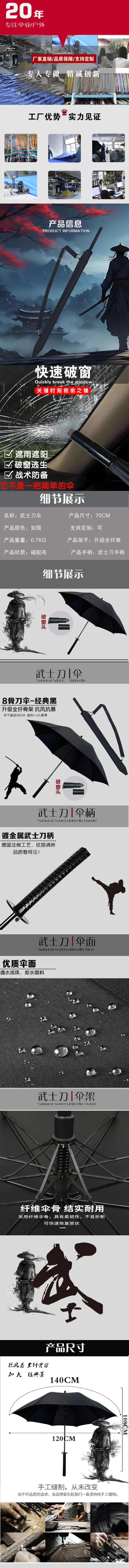 70*8K配破窗头武士伞武士刀雨伞动漫创新长柄高尔夫伞带自救破窗伞